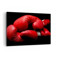 Bild auf Leinwand - Leinwandbild - Rote Boxhandschuhe auf schwarzem Hintergrund - 100x70cm - Die Emotionen des Kampfes liegen hinter uns - Moderne Wanddekoration für Wohnzimmer und Schlafzimmer ARTTOR