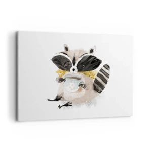 Bild auf Leinwand - Leinwandbild - Entzückender Waschbär mit einer pastellfarbenen Tasse - 120x80cm - Mein Freund der Waschbär - Moderne Wanddekoration für Wohnzimmer und Schlafzimmer ARTTOR