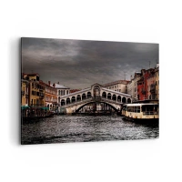 Bild auf Leinwand - Leinwandbild - Rialtobrücke in Venedig über den Canal Grande, klassische Architektur. - 120x80cm - Das Versprechen eines venezianischen Abends - Moderne Wanddekoration für Wohnzimmer und Schlafzimmer ARTTOR