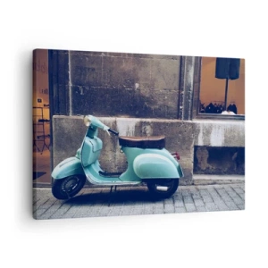Bild auf Leinwand - Leinwandbild - Ein Retro-Roller, der an einer Steinmauer geparkt ist - 70x50cm - Unvergessliche Atmosphäre - Moderne Wanddekoration für Wohnzimmer und Schlafzimmer ARTTOR