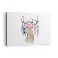 Bild auf Leinwand - Leinwandbild - Romantische Hirschgrafik mit Blumen und Federn - 120x80cm - Seelenführer - sanft, unschuldig - Moderne Wanddekoration für Wohnzimmer und Schlafzimmer ARTTOR
