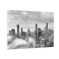 Glasbild - Bild auf glas - Stadtpanorama mit Wolkenkratzern in Schwarzweiß - 70x50cm - Amerikanische Landschaft - Moderne Wanddekoration für Wohnzimmer und Schlafzimmer ARTTOR
