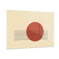Glasbild - Bild auf glas - Minimalistische Grafik mit rotem Kreis und Linien - 100x70cm - Immer wieder und weiter - Moderne Wanddekoration für Wohnzimmer und Schlafzimmer ARTTOR