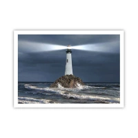 Poster - Ein Leuchtturm auf einem Felsen, umgeben von stürmischer See - 100x70cm - Hier... hier... hier! - Moderne Wanddekoration für Wohnzimmer und Schlafzimmer ARTTOR