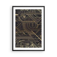 Poster in einem schwarzem Rahmen - Geometrisches Muster in goldenen Farbtönen auf schwarzem Hintergrund - 50x70cm - Konzepte, Ideen, Pläne - Moderne Wanddekoration für Wohnzimmer und Schlafzimmer ARTTOR