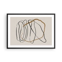 Poster in einem schwarzem Rahmen - Künstlerische Linien in Schwarz und Gold auf hellem Hintergrund - 70x50cm - Komposition – Looptanz - Moderne Wanddekoration für Wohnzimmer und Schlafzimmer ARTTOR