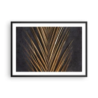 Poster in einem schwarzem Rahmen - Goldenes tropisches Blatt auf schwarzem Hintergrund - 70x50cm - Das Gold der Tropen - Moderne Wanddekoration für Wohnzimmer und Schlafzimmer ARTTOR
