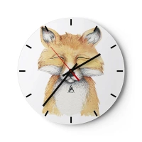 Wanduhr - Glasuhr - Eine Zeichnung eines lächelnden Fuchses auf weißem Hintergrund - 30x30cm - Fuchsstimmungen - Moderne Wanddekoration für Wohnzimmer, Küche und Schlafzimmer ARTTOR