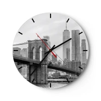 Wanduhr - Glasuhr - Brooklyn Bridge vor der Skyline der Stadt in Schwarzweiß - 30x30cm - New Yorker Atmosphäre - Moderne Wanddekoration für Wohnzimmer, Küche und Schlafzimmer ARTTOR