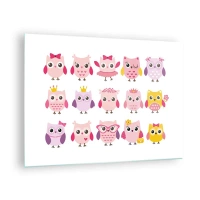 Glasbild - Bild auf glas - Bunte Eulen in verschiedenen Mustern auf weißem Hintergrund - 70x50cm - Einer ist süßer als der andere - Moderne Wanddekoration für Wohnzimmer und Schlafzimmer ARTTOR