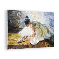 Glasbild - Bild auf glas - Eine nach vorne gebeugte Ballerina in einem weißen Kleid, das mit einer Öltextur bemalt ist - 70x50cm - Aus einem Gemälde von Degas - Moderne Wanddekoration für Wohnzimmer und Schlafzimmer ARTTOR