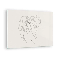 Glasbild - Bild auf glas - Ein sinnlicher Kuss eines Paares in der Konturlinie - 70x50cm - Verstrickt im Gefühl - Moderne Wanddekoration für Wohnzimmer und Schlafzimmer ARTTOR