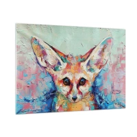 Glasbild - Bild auf glas - Farbenfrohes Porträt eines Fuchses mit ausdrucksstarken Augen und kräftigen Pinselstrichen - 100x70cm - Bist du bereit für mich? - Moderne Wanddekoration für Wohnzimmer und Schlafzimmer ARTTOR