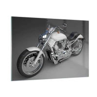 Glasbild - Bild auf glas - Ein verchromtes Motorrad im modernen Stil auf weißem Hintergrund - 100x70cm - Ein Sammlertraum - Moderne Wanddekoration für Wohnzimmer und Schlafzimmer ARTTOR