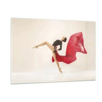 Glasbild - Bild auf glas - Eine Tänzerin im dynamischen Sprung mit rotem Stoff - 120x80cm - Rot und Schwarz - Moderne Wanddekoration für Wohnzimmer und Schlafzimmer ARTTOR