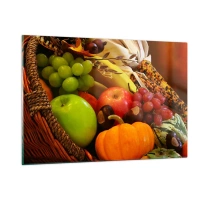 Glasbild - Bild auf glas - Ein Korb voller Obst und Gemüse in einem herbstlichen Arrangement - 120x80cm - Ein Korb voller Ernte - Moderne Wanddekoration für Wohnzimmer und Schlafzimmer ARTTOR