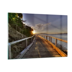 Glasbild - Bild auf glas - Holzsteg bei Sonnenuntergang - 120x80cm - Gehen, weiter der Sonne entgegengehen - Moderne Wanddekoration für Wohnzimmer und Schlafzimmer ARTTOR