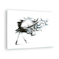 Glasbild - Bild auf glas - Tänzerin in Bewegung mit schwebenden Vögeln - 70x50cm - Die Magie der Musik befreit dich vom Bann - Moderne Wanddekoration für Wohnzimmer und Schlafzimmer ARTTOR