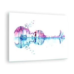 Glasbild - Bild auf glas - Eine gitarrenförmige Landschaft im Aquarellstil - 70x50cm - Ich bringe dir ein paar Regenbögen - Moderne Wanddekoration für Wohnzimmer und Schlafzimmer ARTTOR
