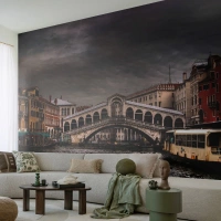 Fototapete Standard Eco - Die Rialtobrücke in Venedig unter einem bewölkten Himmel - 100x70cm - Das Versprechen eines venezianischen Abends - Moderne Wanddekoration für Wohnzimmer und Schlafzimmer ARTTOR