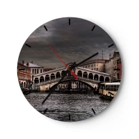 Wanduhr - Glasuhr - Die Rialtobrücke in Venedig unter einem bewölkten Himmel - 30x30cm - Das Versprechen eines venezianischen Abends - Moderne Wanddekoration für Wohnzimmer, Küche und Schlafzimmer ARTTOR