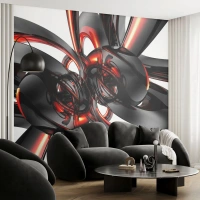 Fototapete Premium Sand - Abstrakte schwarze Formen mit roten Akzenten - 100x70cm - Uhrwerk in Graphit und Rot - Moderne Wanddekoration für Wohnzimmer und Schlafzimmer ARTTOR