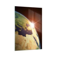 Glasbild - Bild auf glas - Blick auf die Erde aus dem Weltraum mit Sonnenstrahlen am Horizont - 70x100cm - Sonnenaufgang - Moderne Wanddekoration für Wohnzimmer und Schlafzimmer ARTTOR