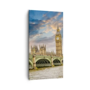 Fototapete Premium Canvas - Big Ben und Westminster Bridge gegen den Himmel in der Abenddämmerung - 100x70cm - Im Imperium ist die Zeit stehen geblieben - Moderne Wanddekoration für Wohnzimmer und Schlafzimmer ARTTOR