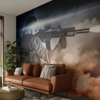 Fototapete Standard Eco - Ein Soldat im Einsatz mit einer Waffe in einer dynamischen Szene - 100x70cm - Nur ein Held - Moderne Wanddekoration für Wohnzimmer und Schlafzimmer ARTTOR