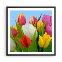 Poster in einem schwarzem Rahmen - Ein blumiger Regenbogen in Tautropfen - 60x60 cm