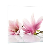 Glasbild - Bild auf glas - Zarte rosa Magnolien auf weißem Hintergrund - 70x100cm - Zart wie ein Frühlingswind - Moderne Wanddekoration für Wohnzimmer und Schlafzimmer ARTTOR