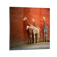 Wanduhr - Glasuhr - Vier Giraffen vor einer Ziegelwand in künstlerischer Umgebung - 30x30cm - Sehen Sie Akazien? - Moderne Wanddekoration für Wohnzimmer und Schlafzimmer ARTTOR
