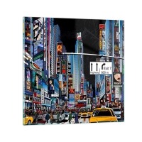 Wanduhr - Glasuhr - Eine geschäftige Stadt mit bunten Werbetafeln und gelben Taxis - 30x30cm - Comicbuch große Nacht - Moderne Wanddekoration für Wohnzimmer und Schlafzimmer ARTTOR