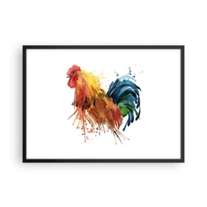 Poster in einem schwarzem Rahmen - Bunter Hahn im Aquarellstil - 70x50cm - Königliches Gewand, königlicher Stolz - Moderne Wanddekoration für Wohnzimmer und Schlafzimmer ARTTOR