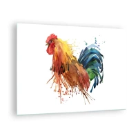 Glasbild - Bild auf glas - Aquarell Hahn in lebendigen Farben auf weißem Hintergrund - 70x50cm - Königliches Gewand, königlicher Stolz - Moderne Wanddekoration für Wohnzimmer und Schlafzimmer ARTTOR