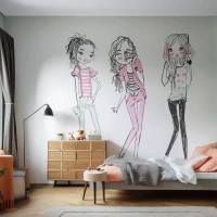 Fototapete Standard Eco - Modische Mädchen im skizzenhaften Stil mit Pastellakzenten - 100x70cm - Es wird, es wird Spaß machen - Moderne Wanddekoration für Wohnzimmer und Schlafzimmer ARTTOR