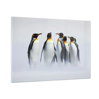 Glasbild - Bild auf glas - Eine Gruppe Pinguine in einer Winterlandschaft - 100x70cm - Treffen in Abendkleidern - Moderne Wanddekoration für Wohnzimmer und Schlafzimmer ARTTOR
