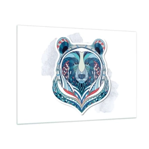 Glasbild - Bild auf glas - Ein farbenfrohes, geometrisches Porträt eines Teddybären - 100x70cm - Eviva Grönland! - Moderne Wanddekoration für Wohnzimmer und Schlafzimmer ARTTOR