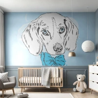 Fototapete Standard Eco - Skizze eines Hundes mit Fliege auf pastellfarbenem Hintergrund - 100x70cm - Hunde-Eleganz - Moderne Wanddekoration für Wohnzimmer und Schlafzimmer ARTTOR