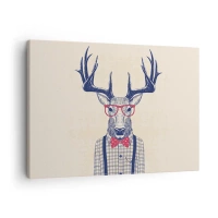 Bild auf Leinwand - Leinwandbild - Stilisierte Grafik eines Hirsches mit Brille und Fliege - 50x70cm - Eine lustige Extravaganz - Moderne Wanddekoration für Wohnzimmer und Schlafzimmer ARTTOR