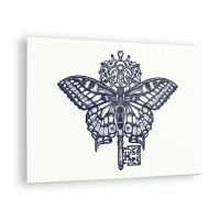Glasbild - Bild auf glas - Abbildung eines Schmetterlings mit einem Schlüssel in der Mitte - 70x50cm - Alle Geheimnisse des Herzens - Moderne Wanddekoration für Wohnzimmer und Schlafzimmer ARTTOR