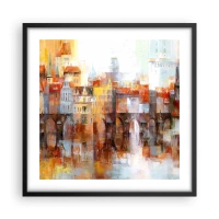 Glasbild - Bild auf glas - Farbenfrohes Stadtpanorama mit Brücke und Spiegelung im Wasser - 100x70cm - Schön ist es auch unter der Brücke - Moderne Wanddekoration für Wohnzimmer und Schlafzimmer ARTTOR