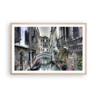 Bild auf Leinwand - Leinwandbild - Venezianischer Kanal mit Gondel und Steinbrücke - 70x100cm - Seit Jahrhunderten in stiller Besinnung - Moderne Wanddekoration für Wohnzimmer und Schlafzimmer ARTTOR