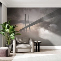 Fototapete Standard Eco - Moderne Brücke im Nebel bei Sonnenuntergang - 100x70cm - Auf dem Fluss, den es nicht gibt - Moderne Wanddekoration für Wohnzimmer und Schlafzimmer ARTTOR