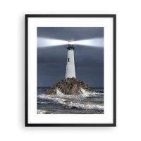 Bild auf Leinwand - Leinwandbild - Ein Leuchtturm auf einem Felsen, umgeben von stürmischer See - 100x70cm - Hier... hier... hier! - Moderne Wanddekoration für Wohnzimmer und Schlafzimmer ARTTOR