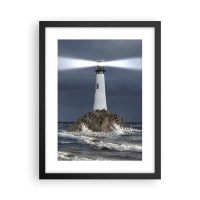 Bild auf Leinwand - Leinwandbild - Ein Leuchtturm auf einem Felsen, umgeben von stürmischer See - 120x80cm - Hier... hier... hier! - Moderne Wanddekoration für Wohnzimmer und Schlafzimmer ARTTOR