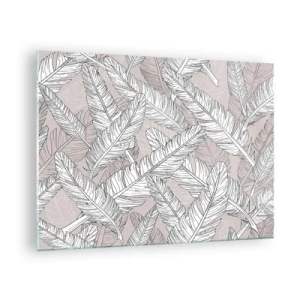 Glasbild - Bild auf glas - Schwarz-weiße Blätter auf beigem Hintergrund im grafischen Stil - 70x50cm - Ein Federwirbel - Moderne Wanddekoration für Wohnzimmer und Schlafzimmer ARTTOR