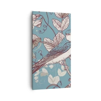 Fototapete Premium Canvas - Ein Vogel auf einem Ast in einem zarten Blumenstil - 100x70cm - Im Weißholz von Rot und Silber - Moderne Wanddekoration für Wohnzimmer und Schlafzimmer ARTTOR