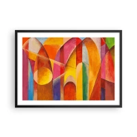 Poster in einem schwarzem Rahmen - Eine abstrakte Komposition voller farbenfroher geometrischer Formen. - 70x50cm - Kathedrale der Sonne - Moderne Wanddekoration für Wohnzimmer und Schlafzimmer ARTTOR