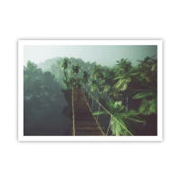 Poster - Eine Hängebrücke in einem tropischen Wald, umgeben von Nebel. - 100x70cm - Über der Brandung des Grüns - Moderne Wanddekoration für Wohnzimmer und Schlafzimmer ARTTOR